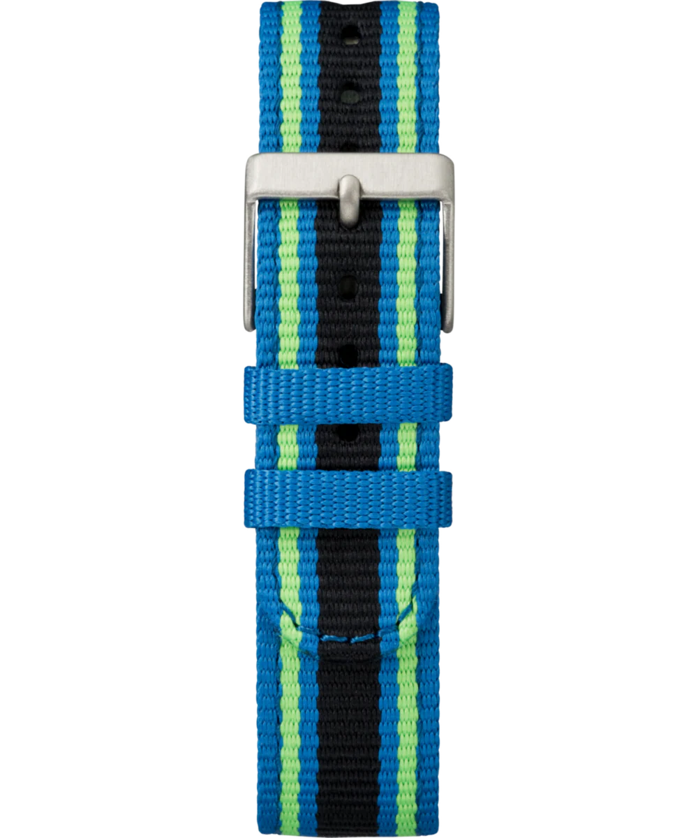 Our Time Machines™ collection offers digital watches just for kids that have easy-to-read displays, adjustable Fabric bands, INDIGLO® night-light and are 50 meter water resistant. This green and black striped strap will match any child’s personality! Plus, all of our kids’ watches are covered by our 100% worry-free replacement plan so you don’t worry about lost or broken watches. See timex.com/kids-warranty.html for details.